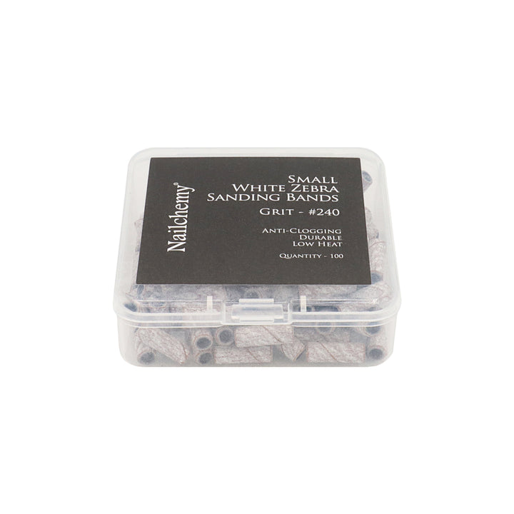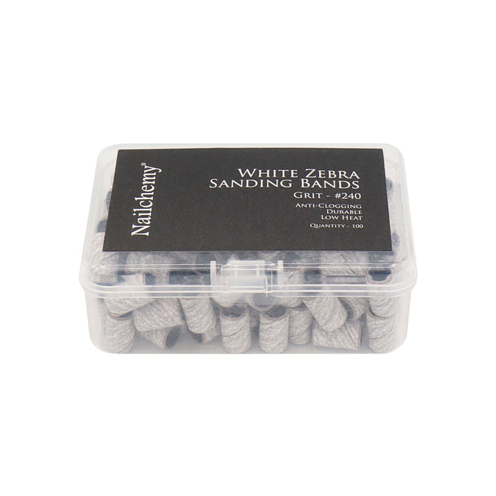 - 1 x Box Nailchemy White Zebra Sanding Bands – For Standard Mandrel Bit (240 grit)