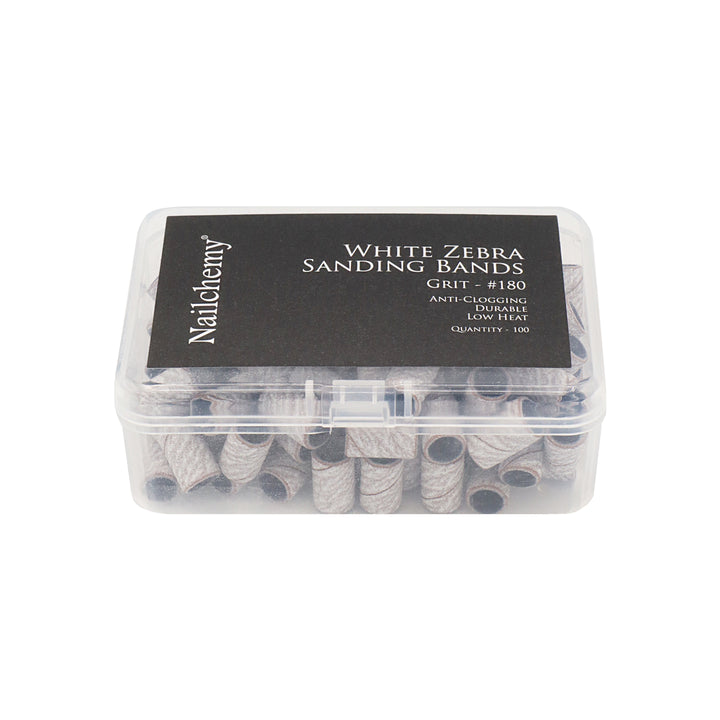 - 1 x Box Nailchemy White Zebra Sanding Bands – For Standard Mandrel Bit (180 grit)