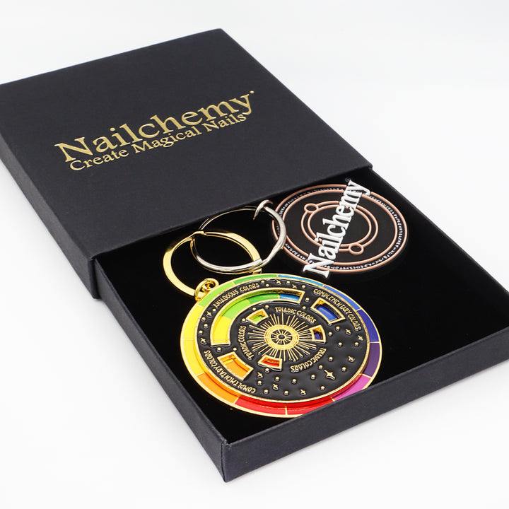 Each Pocket Colour Wheel & Key Ring comes presented in a luxury black gift box embossed with the metallic gold Nailchemy logo, making it an ideal gift for nail artists, students, teachers, and colour lovers alike.