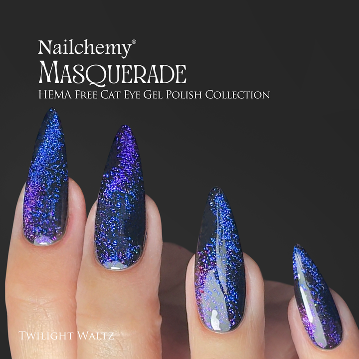 Twilight Waltz – Masquerade Collection – HEMA Free Chameleon Cat Eye Gel Polish (10g) Dance Beneath a Starlit Sky Step into a realm of mystery and moonlight with Twilight Waltz from Nailchemy’s Masquerade Collection. This enchanting chameleon cat eye gel polish evokes the graceful movement of a ballroom waltz at...